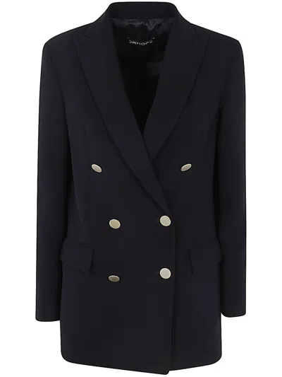 Gold Bott. Double Breasted Coat In Black