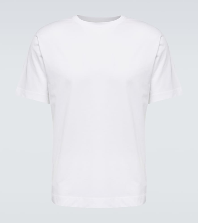 Ribbed Crew-neck Cotton T-shirt With Short Sleeves In White