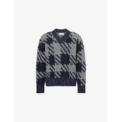 Mens Navy Macao Patterned Wool-alpaca Blend Jumper In Blue