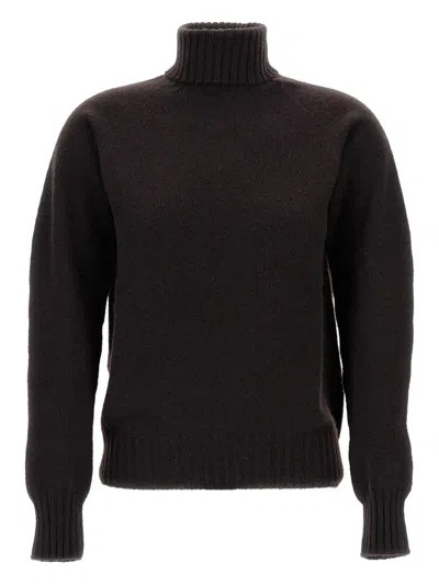 Wool Knit Turtleneck Sweater With Ribbed Collar In Black