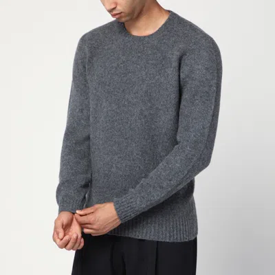 Navy Blue Wool Crew Neck Sweater In Black