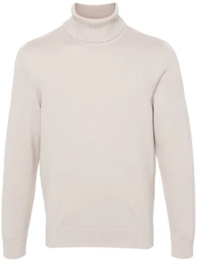 Turtleneck Sweater In Brown Cashmere Ribbed Trim