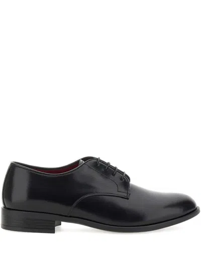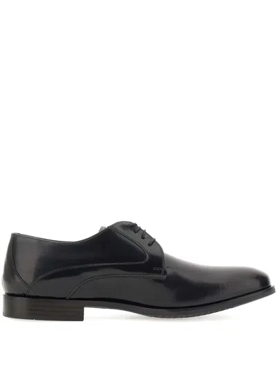 Lace-up Leather Derby Shoes In Black
