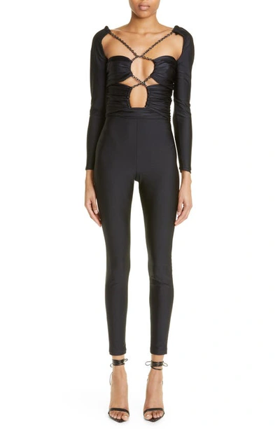 HOLLY亮面平纹针织链条连身裤