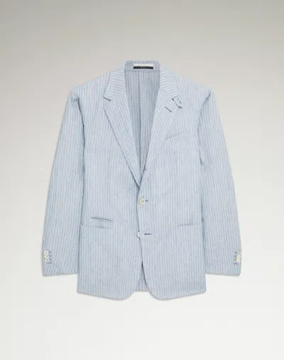 Linen Stripe Cavendish Single Breasted Sports Coat In Blue