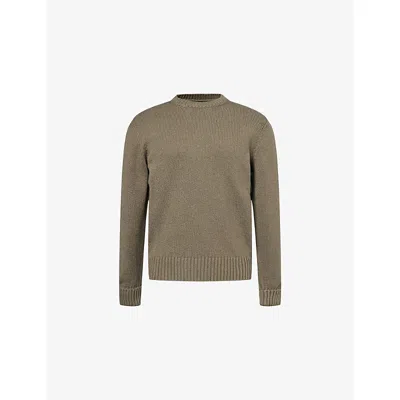 Mens Sage Regular-fit Crewneck Cotton Jumper Xl In Silver