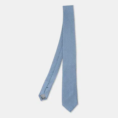 Pre-owned Light Blue Silk Herringbone Stripe Woven Tie