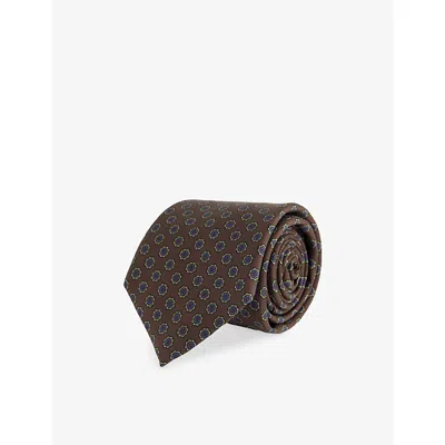 Mens Chocolate Wide-blade Printed Silk Tie In Brown