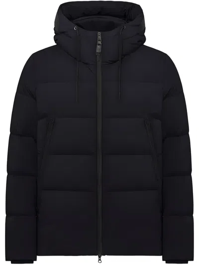 Black Hooded Jacket In Technical Fabric In Blue