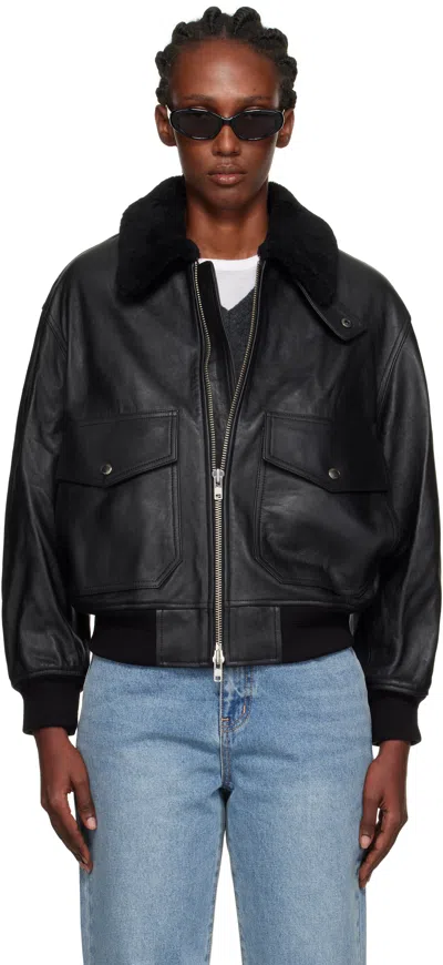 ブラック A-2 Shearling Collared レザージャケット In Black