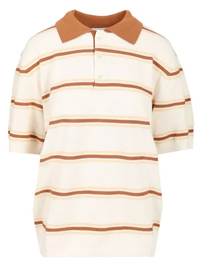 White Knitted Polo Shirt With All-over Striped Motif
