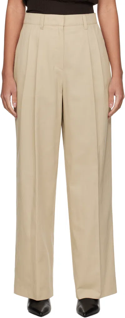 Beige Double-pleated Chino Trousers