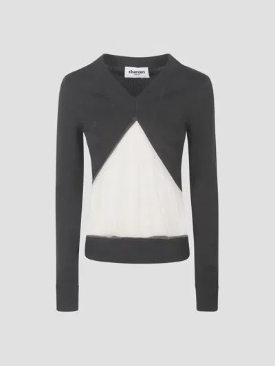Triangle Floating Knit V-neck Sweater In Gray