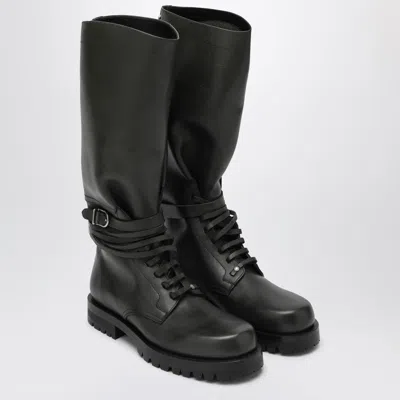 Dark Green High Combat Boots In Black