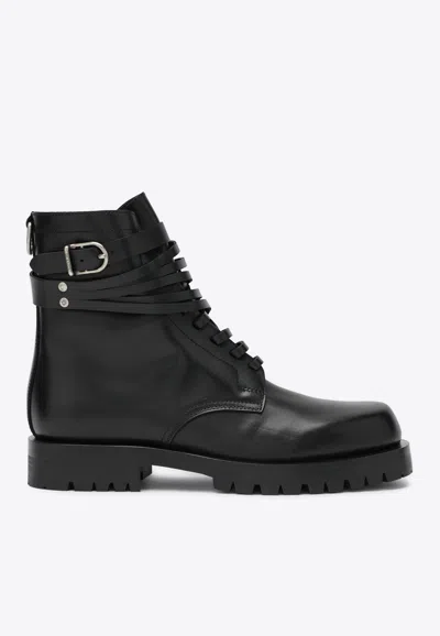 Leather Combat Boots In Black