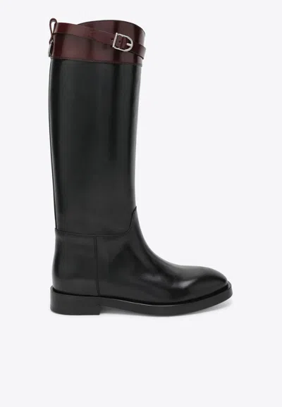 Leather Knee-high Boots In Black