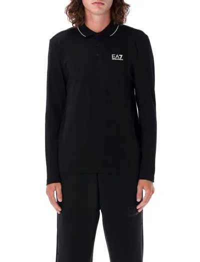Emporio Armani Long Sleeve Polo Shirt In Black