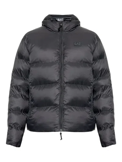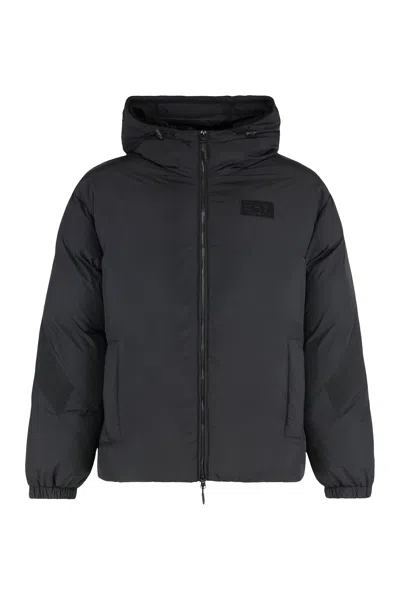 Emporio Armani Hooded Ultra-light Down Jacket In Blue