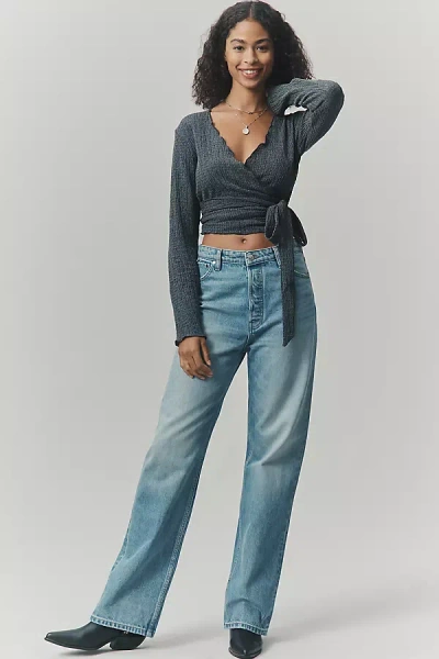 Alida High Rise Bowed Leg Jeans In Tribeca In Blue