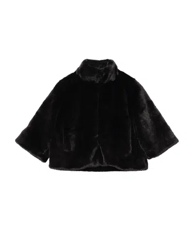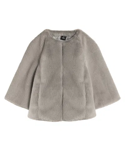 Collarless Fur Jacket With Raglan Sleeves In Gray