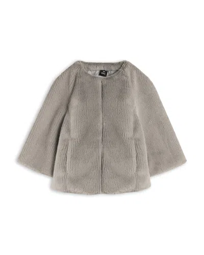 Collarless Fur Jacket With Raglan Sleeves In Gray