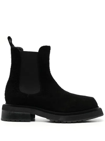 这支由设计组合Mike Eckhaus和Zoe Latta创立的时装品牌却是眼下纽约最受瞩目的“跨性别”时装品牌之一。若是单纯地用“跨性别”来形容Eckhaus Latta的设计,也许太过狭隘。但从那些裸露出男模腹部的紧身针织衫和廓形宽松的长裙中,却还是可以看出“去性别化”的虚无理念。在对面料和材质的感知中,Eckhaus和Latta将一切可以用于制作服装的材料随机拼凑成样式粗糙的服装。从廓形肥大的单宁布长裤、如同窗帘布的天鹅绒上衣到用双层胶底的白色篮球鞋,在颓废消极的设计语言中,Eckhaus Latta表现的是一种摒弃任何意义的嘲讽。