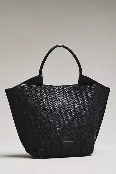 Austin Large Woven Leather Top Handle Bag In Black