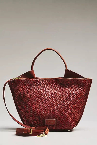 Austin Large Woven Leather Top Handle Bag In Brown