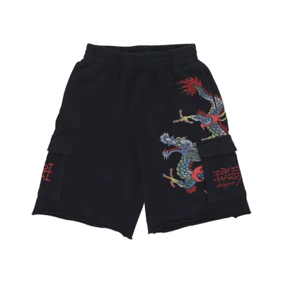 Men's Tracksuit Shorts Crawling Dragon Sweat Cargo Shorts Black