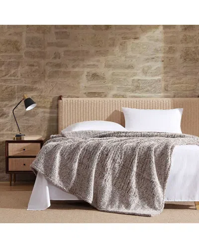 Lookout Mountain Solid Tipped Print Sherpa Heating Blanket In Neutral