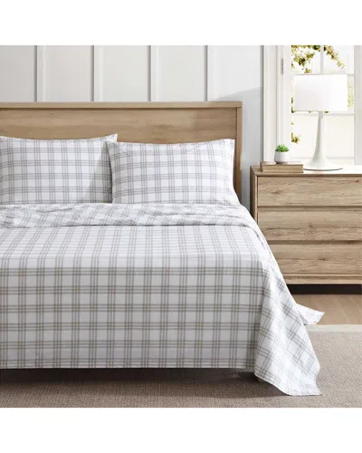 200 Thread Count Basic Plaid Percale Sheet Set In White