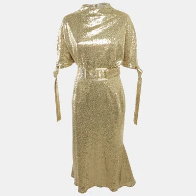 Pre-owned Gold Sequin Belted Pedernal Dress S