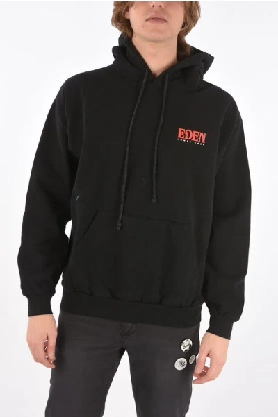 Reclycled Cotton Sweatshirt With Hood And Back Print In Black