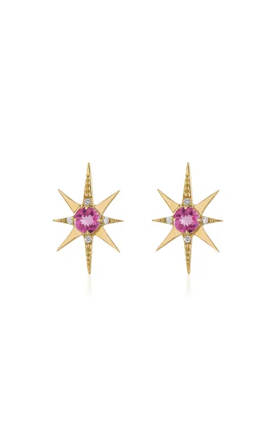 Pink Large Starburst 14k Yellow Gold Multi-stone Earrings In Yellow Gold/diamond