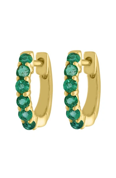 Emerald Huggie Hoop Earrings In Yellow Gold