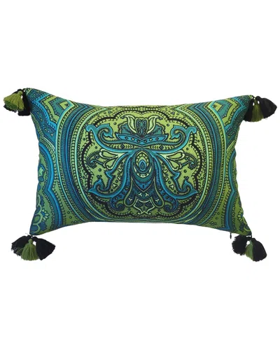 Indoor/outdoor Colorblock Tassel Fringe Lumbar Decorative Pillow In Green