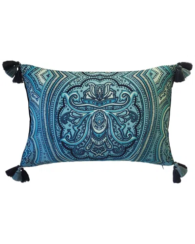 Edie @ Home Indoor/outdoor Arabesque Watercolor Paisley Decorative Pillow In Blue