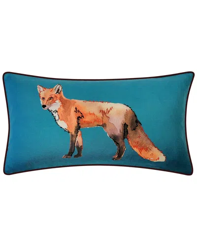Edie@home Watercolor Fox Print With Ribbon Embroidery Decorative Pillow In Blue
