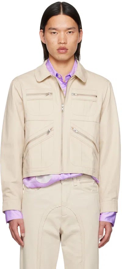 Beige Spread Collar Jacket In Cream