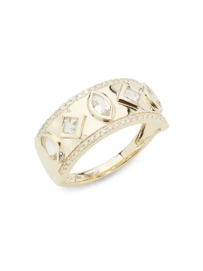 Women's 14k Yellow Gold, White Topaz & 0.13 Tcw Diamond Ring