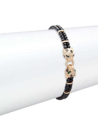 Women's 14k Yellow Gold, Black Spinel, Diamond & Emerald Panther Bracelet