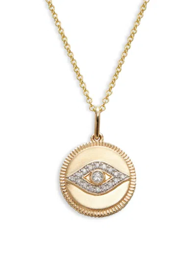 Women's 14k Yellow Gold & 0.49 Tcw Diamond Evil Eye Pendant Necklace