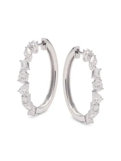 Women's 14k White Gold & 3.32 Tcw Diamond Hoop Earrings