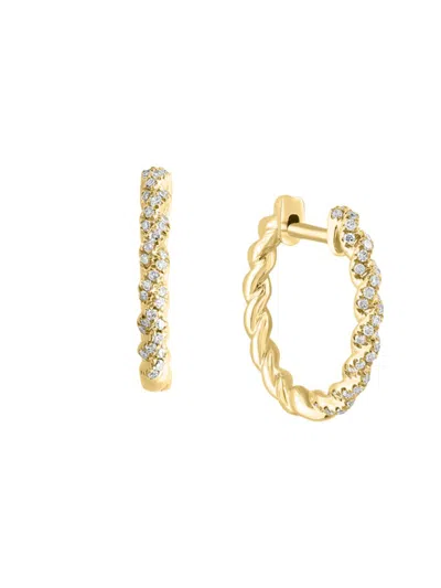 Women's 14k Yellow Gold & 0.20 Tcw Diamond Twisted Huggie Earrings