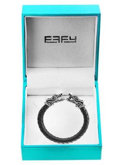 Men's Sterling Silver, Black Sapphire & Leather Dragon Bracelet