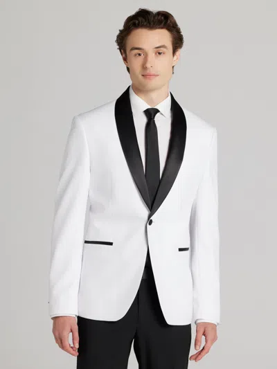Modern Fit Satin Peak Lapel Tuxedo Jacket In White