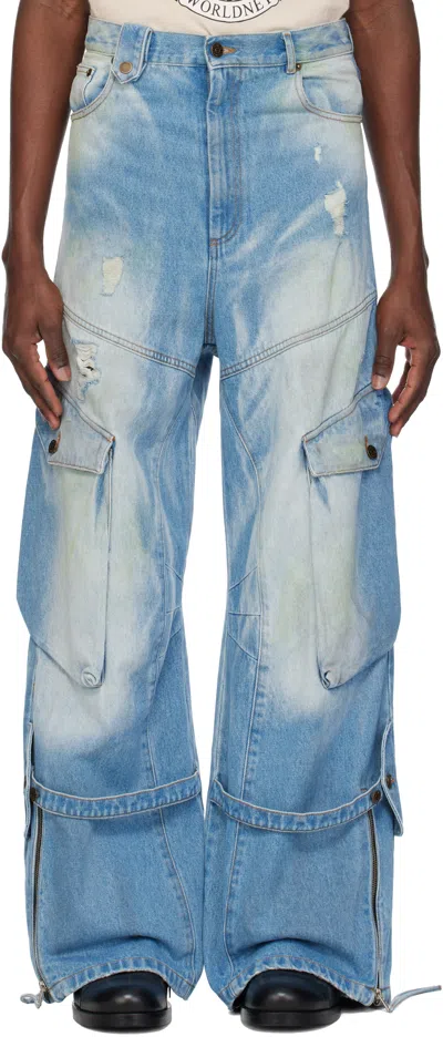 Ssense Exclusive Blue Paint Splatter Denim Cargo Pants In Blue Dirty Ssense