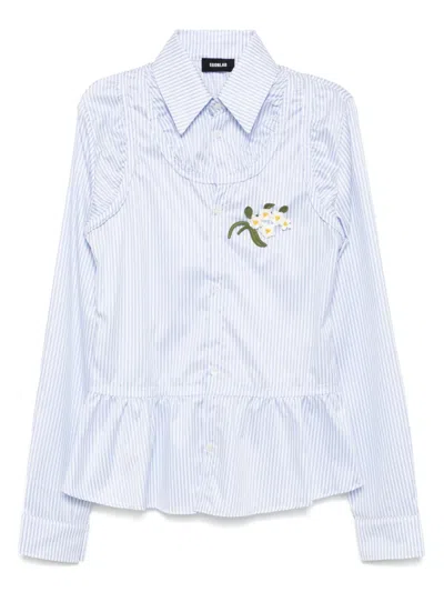 花卉印花束腰伞摆衬衫