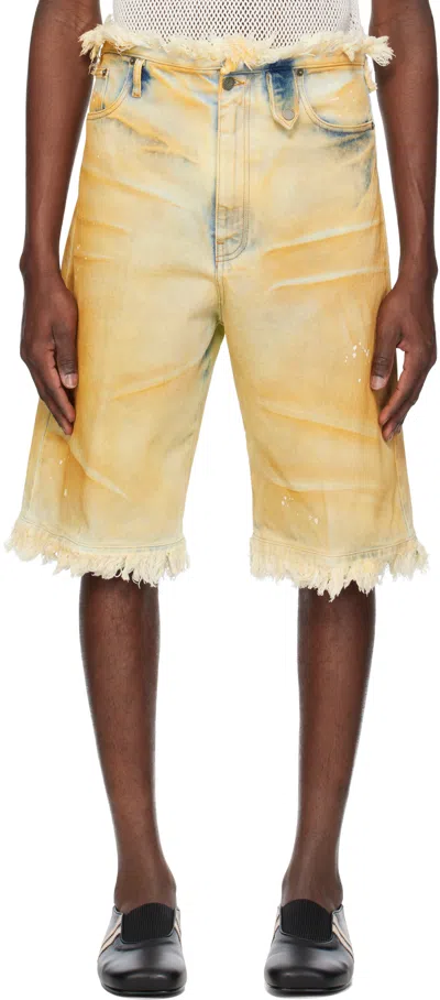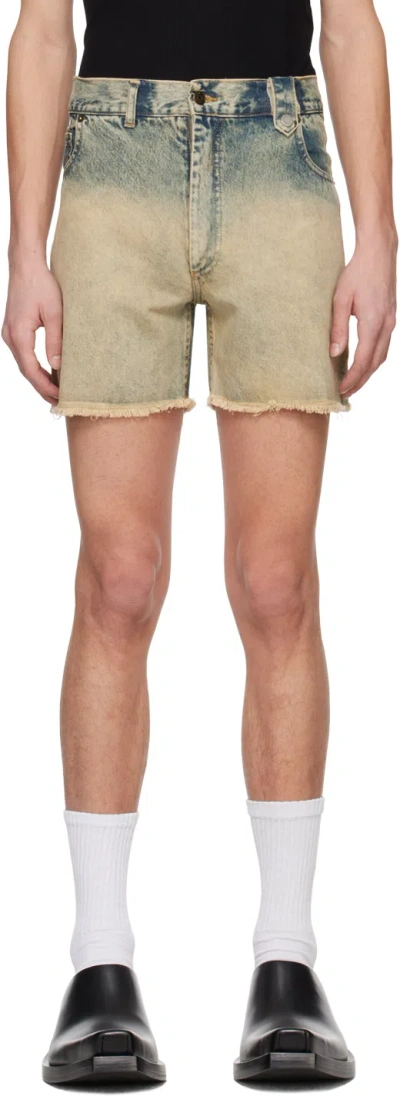 Beige Raw Edges Denim Shorts In Blue