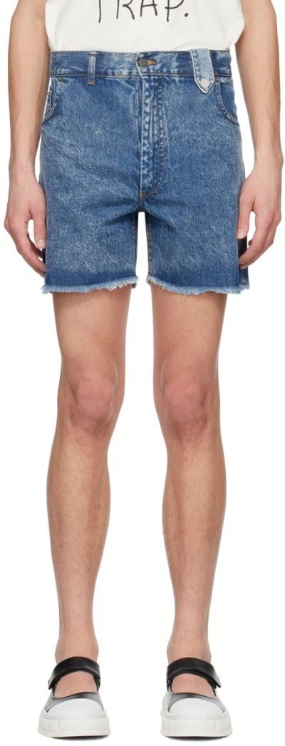 Blue Stonewashed Denim Shorts In Champagne